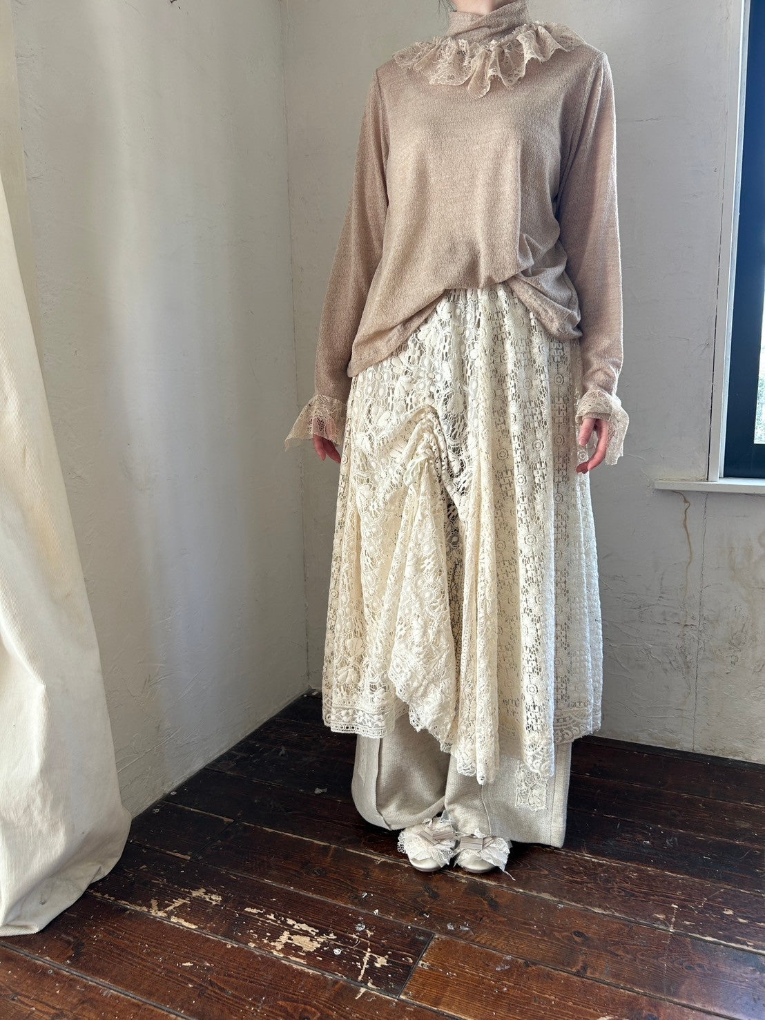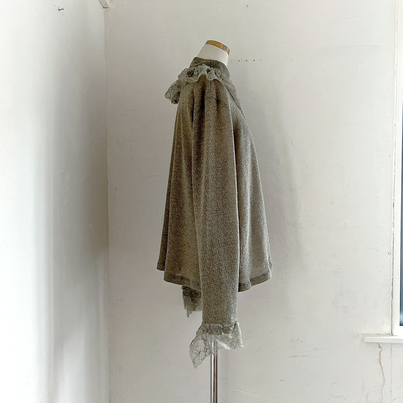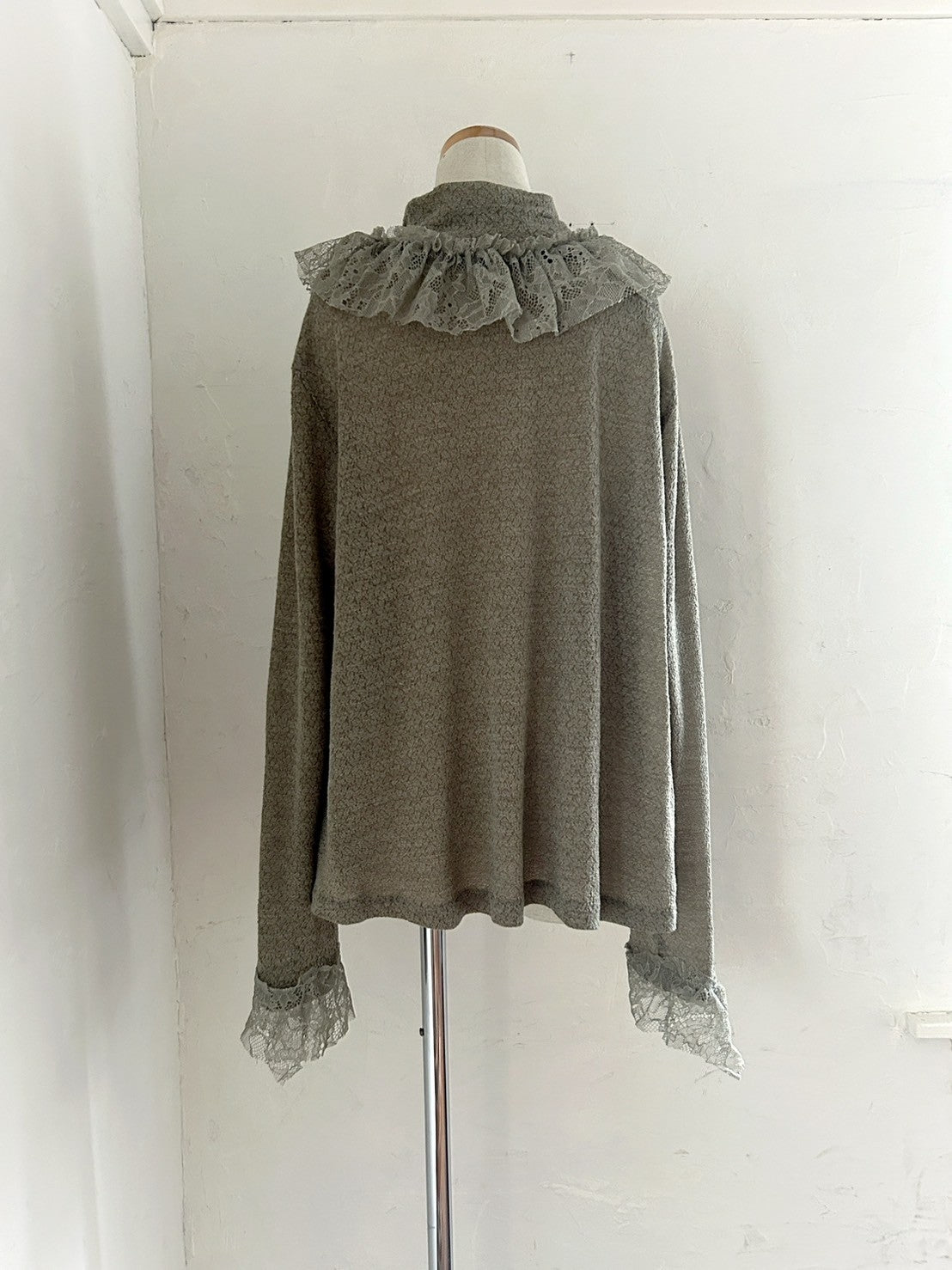 袖口のレースも上品なアクセントになっています。一枚でもレイヤードコーディにも活躍するアイテムです。