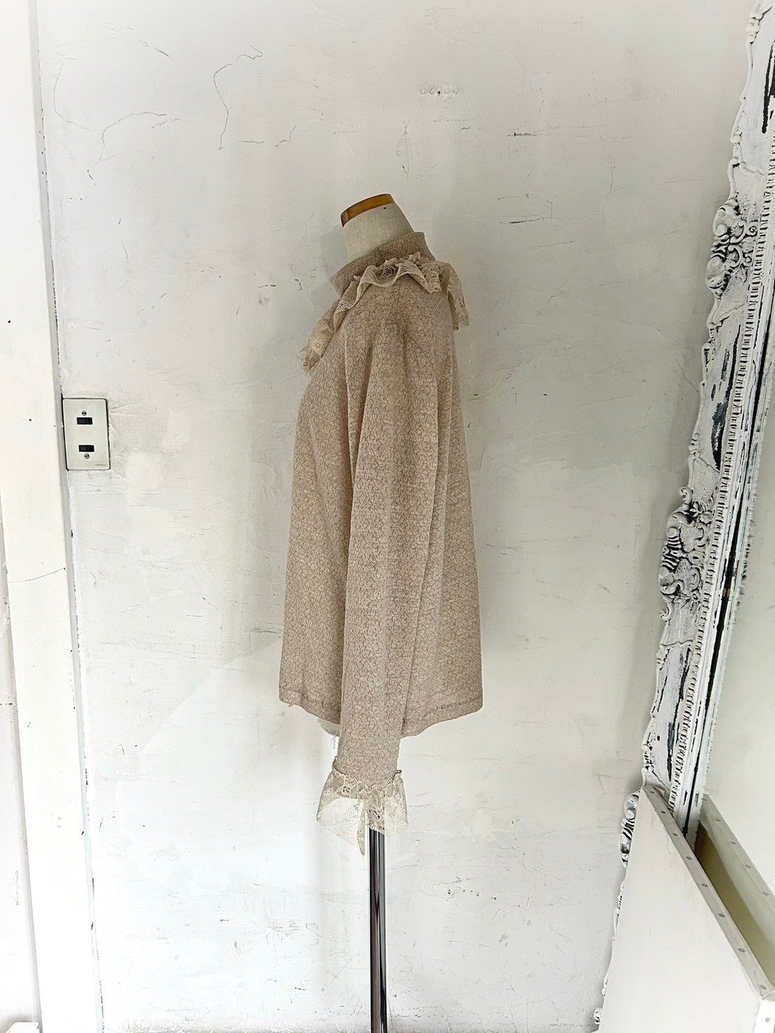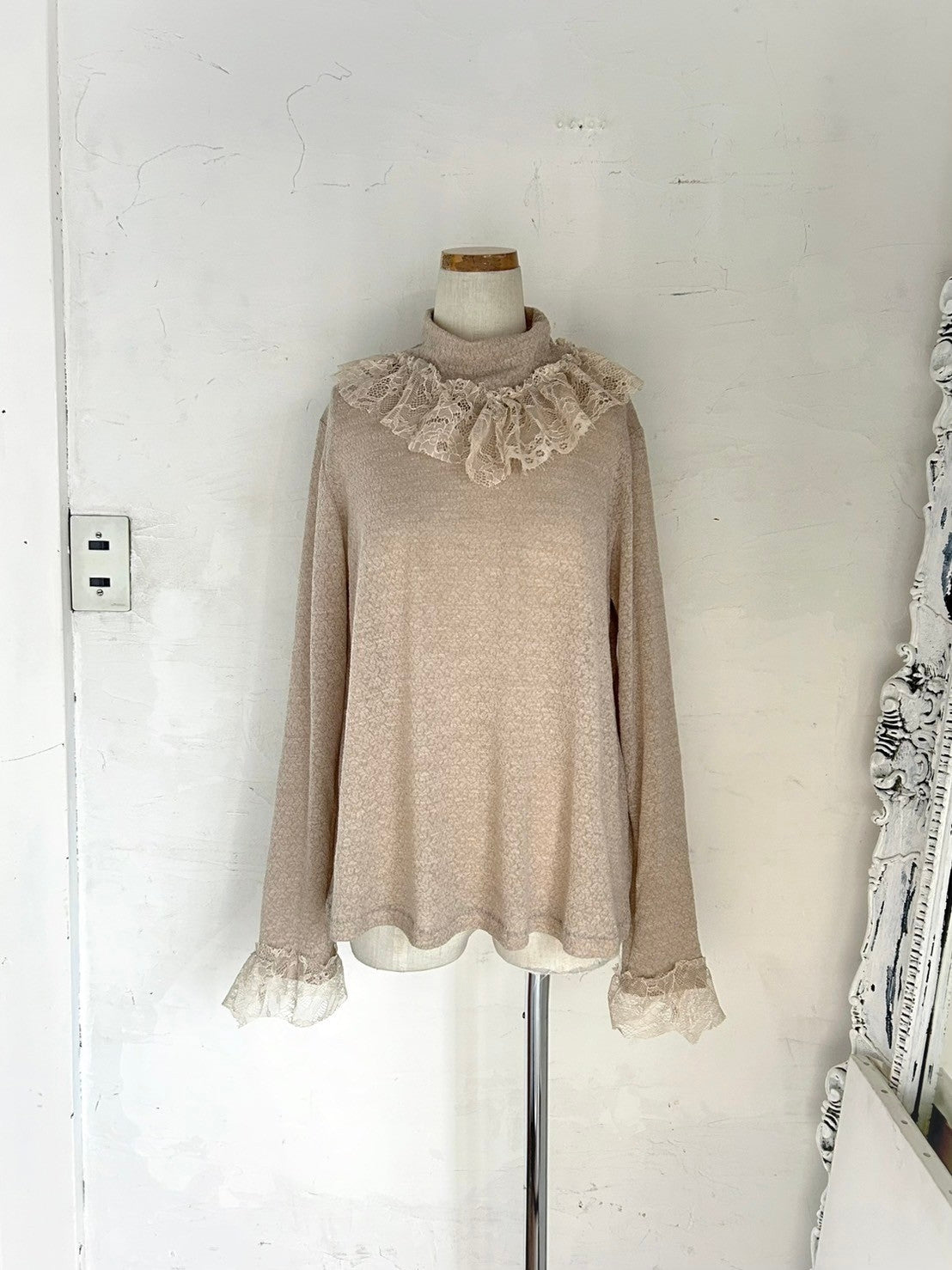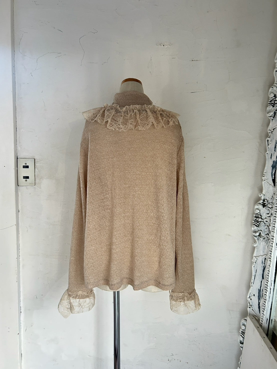 袖口のレースも上品なアクセントになっています。一枚でもレイヤードコーディにも活躍するアイテムです。