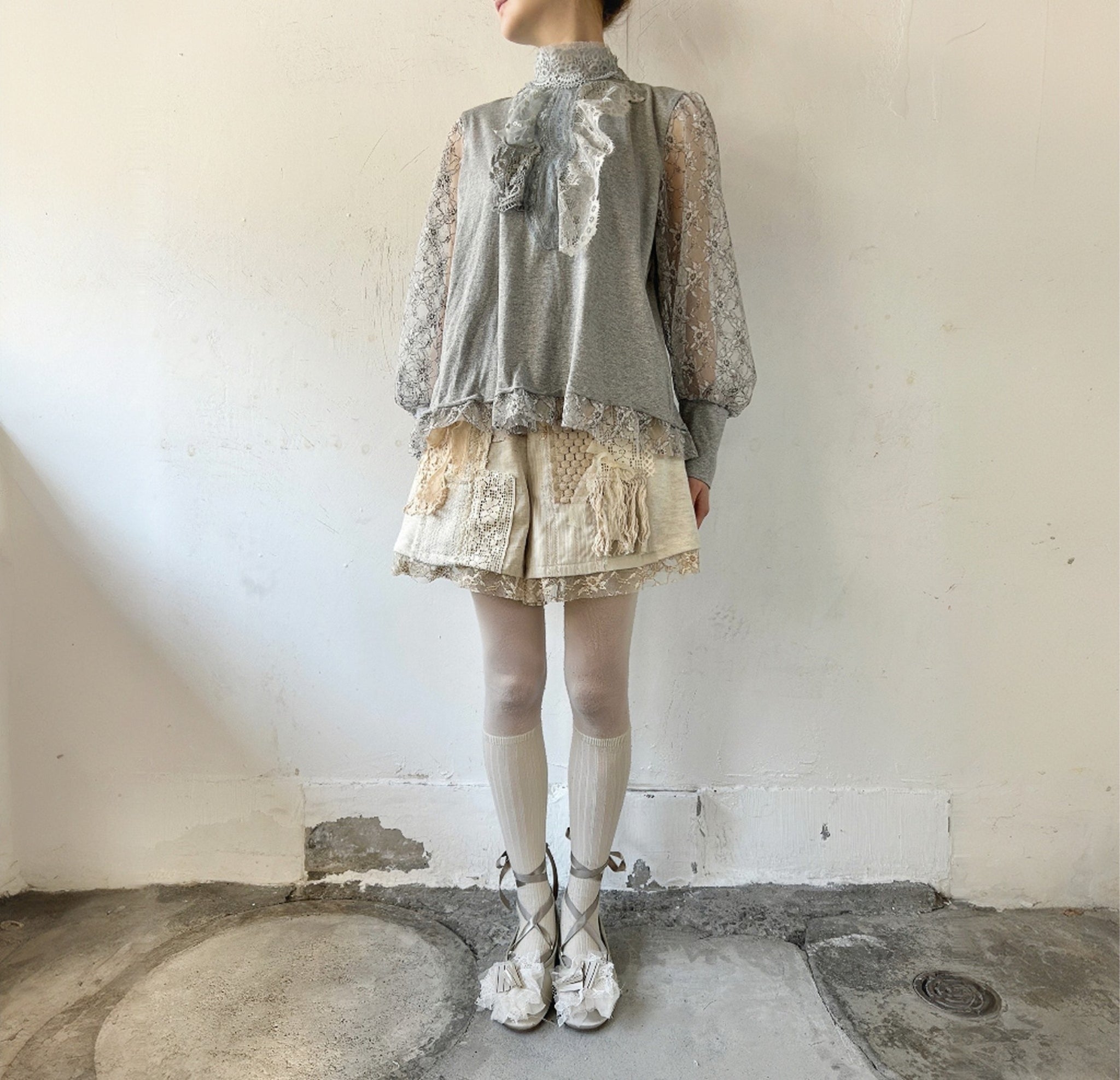 pleats tape mix lace frill ballet shoes #1415914