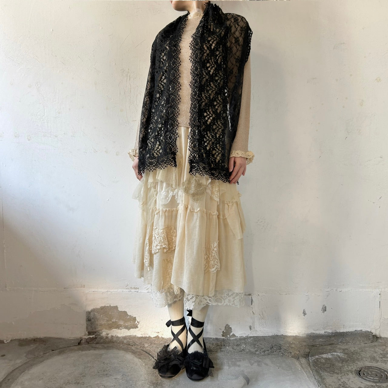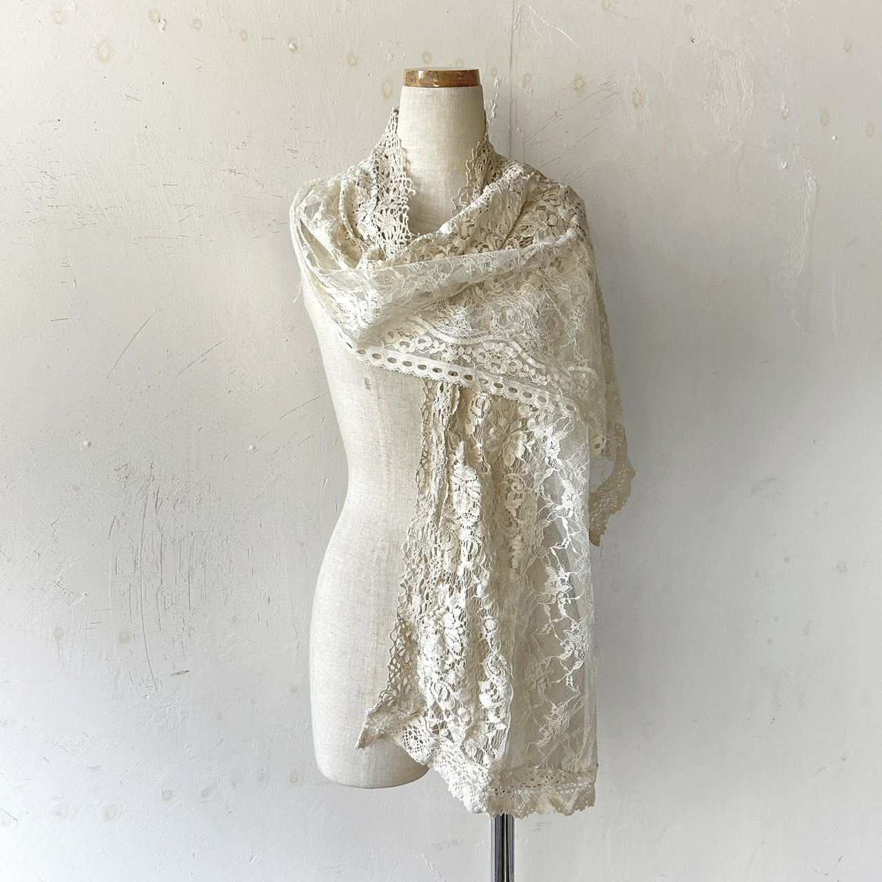 様々な手染めレースをミックスしたアンティークな雰囲気たっぷりのショール
